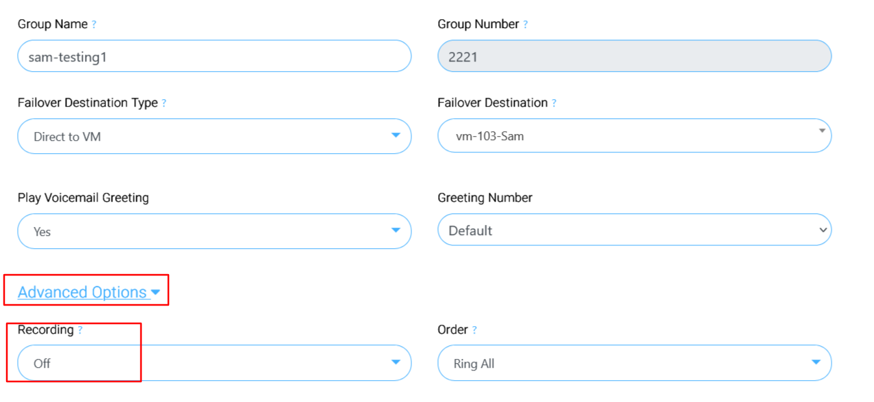 Recording at the ring group level captures calls routed to the group. <mark style="color:red;">However, if call recording is not enabled for the originating number, calls redirected to the group will not be recorded.</mark>