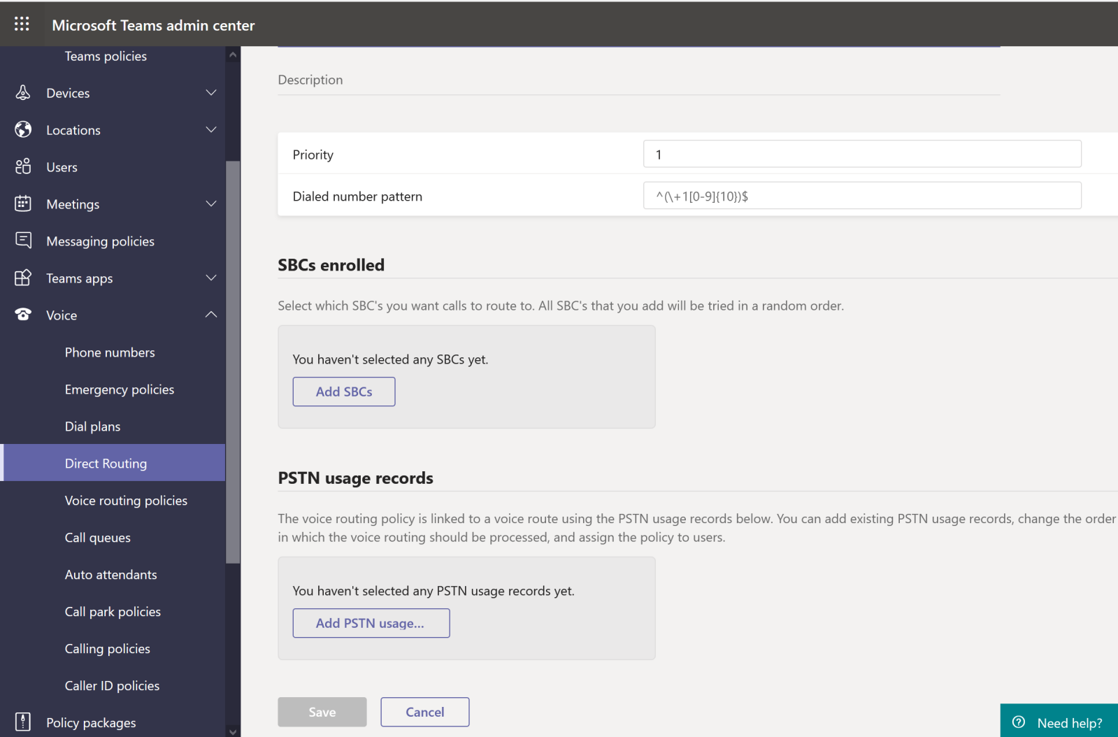 Set the priority and specify the dialled number pattern as per your service provider’s numbering plan.
