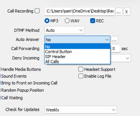 * Locate the **Auto Answer** dropdown